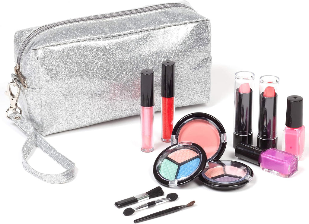 Kids Washable Makeup Set with Glitter bag - Silver